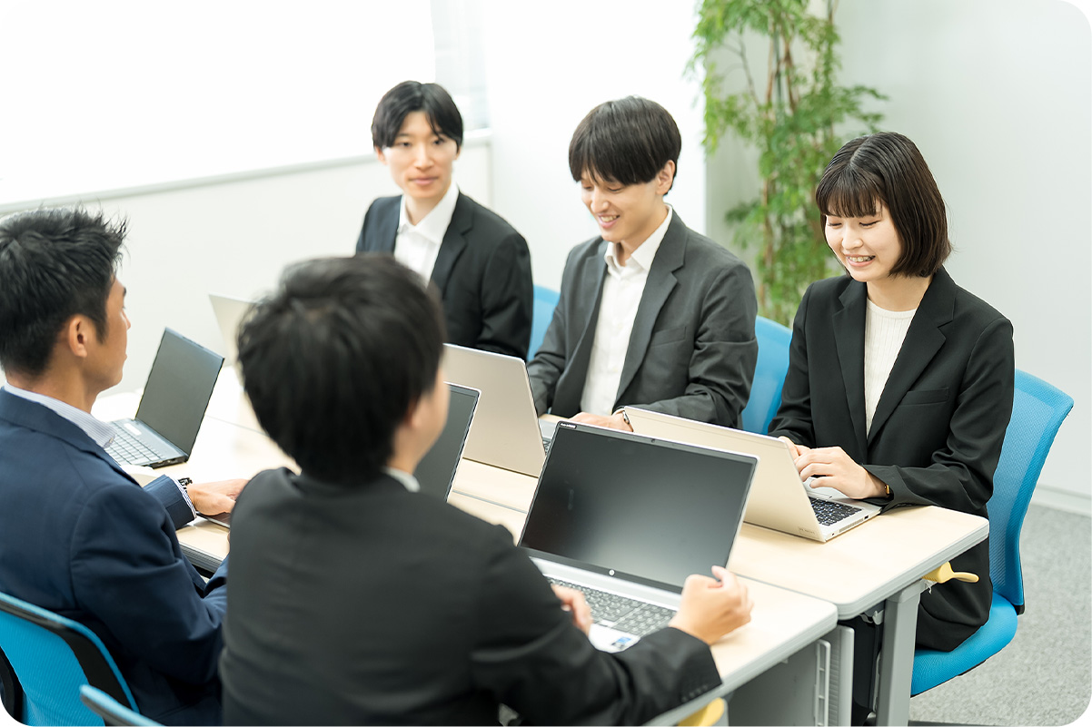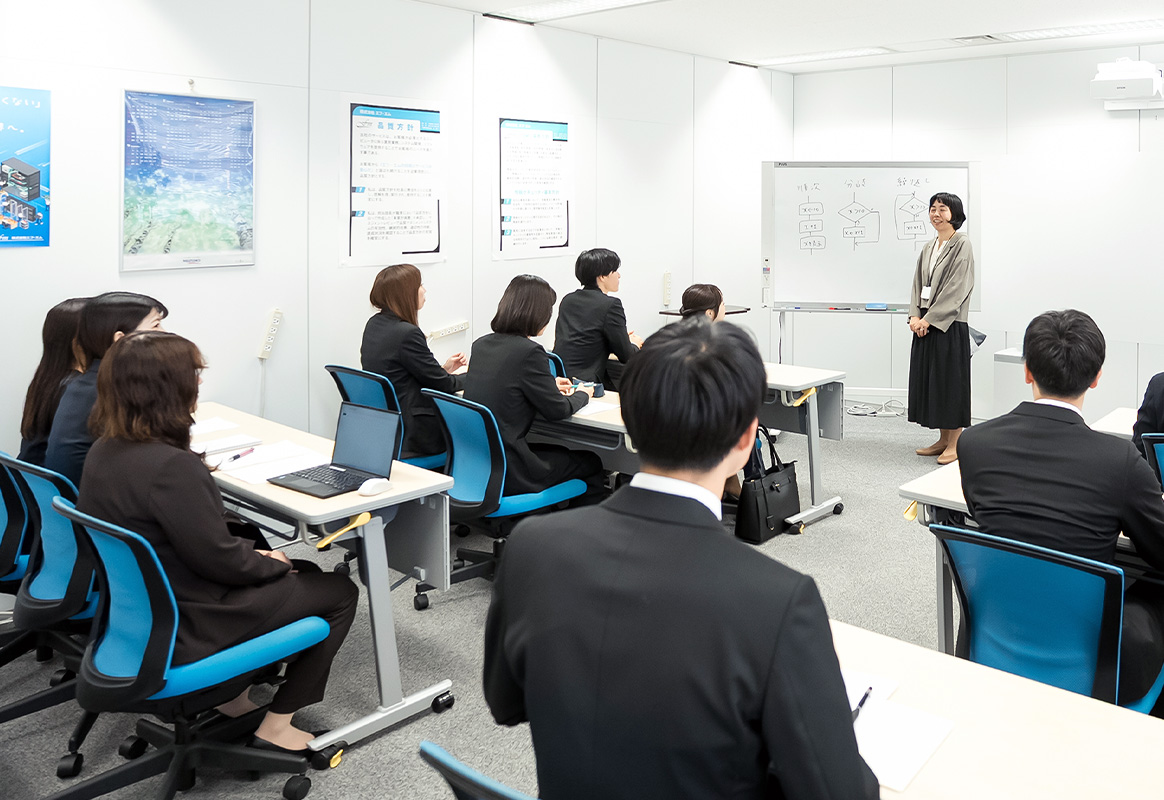 【問題解決能力・コミュニケーション能力・柔軟性】これら3つの強みを体現するため社内の教育部が専属講師として内定者講習、新入社員研修を実施。