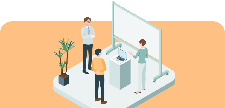 エンジニアとしての技術力を育成するのはもちろん、技術の説明や交渉にコミュニケーション能力は必要不可欠です。研修では模擬プレゼンテーションを繰り返してテクニックを学び、日頃のミーティングなどでコミュニケーション能力を高める指導をしています。