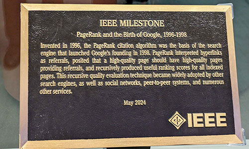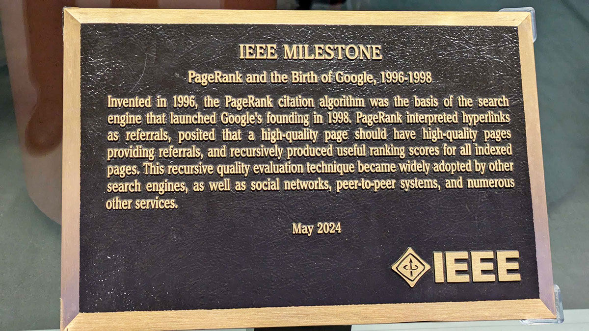 Googleが受章したIEEEのマイルストーン(※)。カフェの前に設定されている。※IT関係で歴史的偉業に対して行われる顕彰活動。