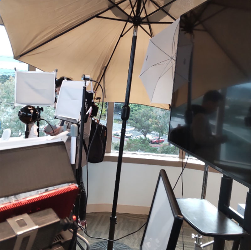 - 最新のニュースなどの現地情報を事務所内のスタジオから提供している。